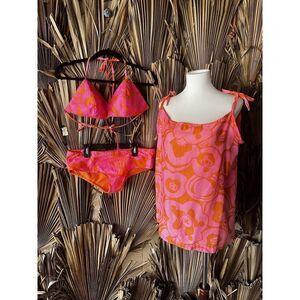 Eeni Meeni Vintage 60s Flower Power Mod Bikini with Coverup Micro Mini Dress