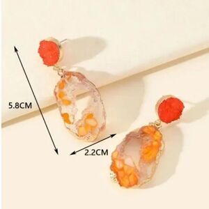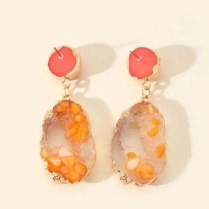 Color Block Orange Geode Inspired Women's Fashion Dangle Earrings