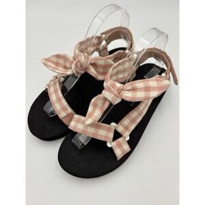 Loeffler Randall Maisie Sandals Pink White Gingham Fabric Size 8.5 Comfort
