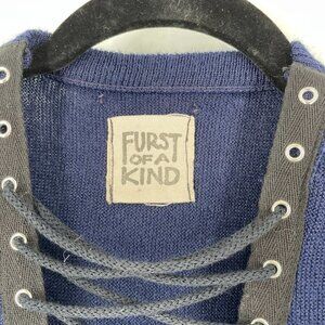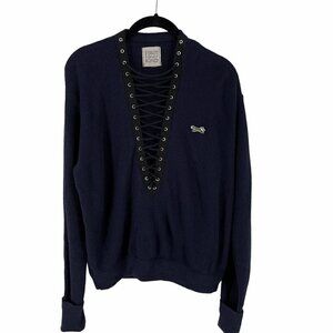 Furst of a Kind Repurposed Vintage 70's The Fox Navy Lace Up Pullover Sweater M