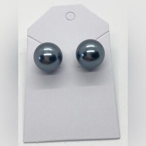 Gray Large Pearl Stud Earrings Preppy Classic Traditional Party Retro Feminine