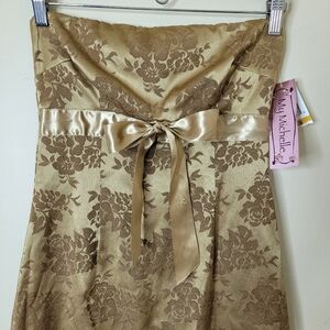 Vintage My Michelle gold brocade strapless mini dress, new with tags and made in the USA.