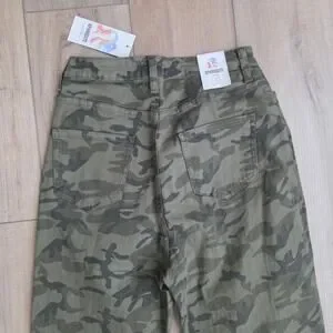 Aphrodite Crossover High Waisted Distressed Loose Camo Green Jeans Women Sz 9/29