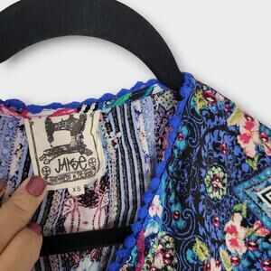 Jaase Floral Boho Hi Lo Tassel Split Neck Relaxed Blouse Top Women Sz XS