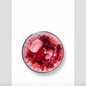 Introducing the delightful Valentine's Candle, the perfect touch to celebrate love in a warm, friendly way. This charming candle is adorned with a base featuring red, pink, and white hearts, creating a romantic vibe that’s just right for the special day. Its pink whipped top, embellished with red macarons, hearts, and luscious red chocolate accents, promises to elevate any space with its lovely, heartfelt design.