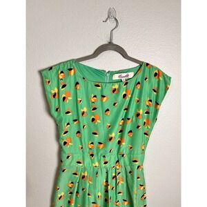 Emmelee Womens Green Short Cap Sleeve Round Neck Shift Dress Size Medium
