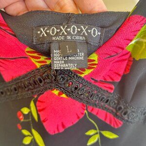 Vtg XOXOXO Black Floral Prom Baby Doll Maxi Dress Fairy Coquette Tiered Sz L Y2K