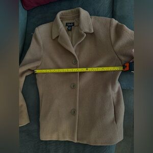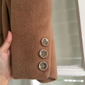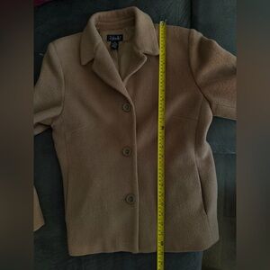 Classic camel coat from Rafaella, size 10. Made from a warm wool blend (70% wool) with full lining. Button front with 3-button detail on the sleeves.