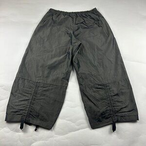 Excellent used condition, 100% poly woven cropped pant has no notable signs of natural wear. No pockets, full elastic waist - no drawstring ties. Very oversized by design. Wide cropped legs have adjustable cinch detailing front & back CENTER. Size Small, please reference measurements for sizing & fit inquiries.
