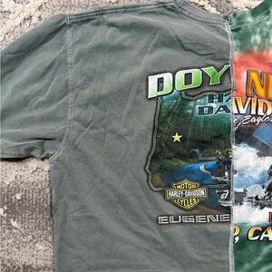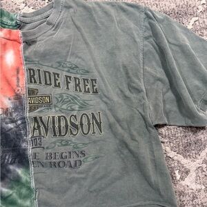 Bold tie-dye design with Harley-Davidson logo. Features green and multicolor split style. Hand made has cropped oversized fit. T Shirts were XL