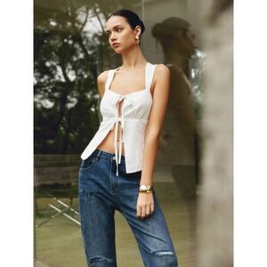 Commense Cotton & Linen Knotted Bow Detail Strappy Top Size Small