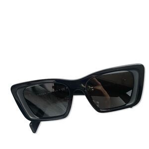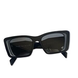 Prada Eyewear black square frame sunglasses logo sides Revolve in case $489
