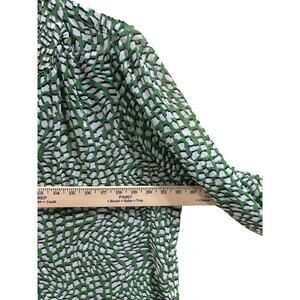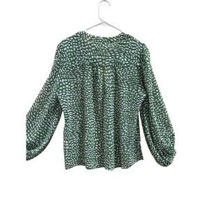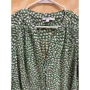 Chico’s Women’s Size 2 Boho Peasant Blouse Green White Abstract Geo print resort
