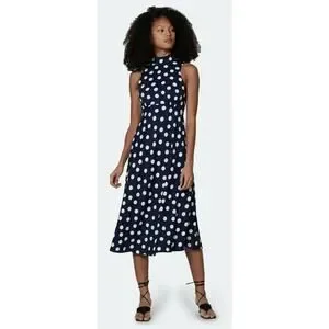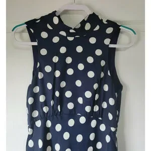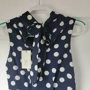 Most Of All Coralie Satin Sleeveless Midi Dress Navy Blue White Polka Dot Size 4