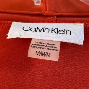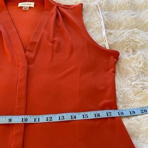 Vibrant orange V-neck top by Calvin Klein. Elegant and versatile. No rips or stains. Item comes from my smoke free and pet free home. Measurements are shown in photographs to help with sizing.