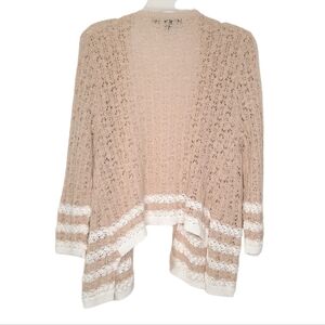 89th & Madison Open Knit Open Front Drape Cardigan Beige White Womens Size Large