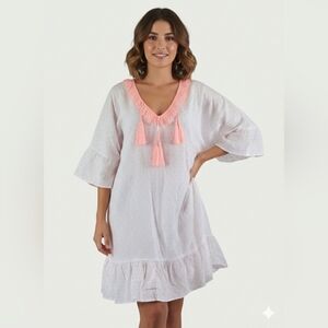 Stylish dress with vibrant pink patterns. Ideal for any occasion.