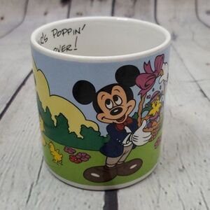 Disney Disneyana mickey mouse minnie mouse pluto scenery cartoons pop culture Disney classic Easter holiday spring Disneyland coffee mug tea cup collection collector 90's 1990's blue yellow green black pink colorful cute Easter eggs