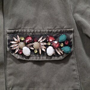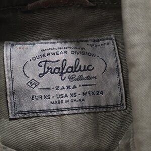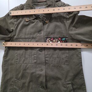 Zara Jacket Women XS Green Buttons Cotton LS Embellished Grunge Cottagecore Boho