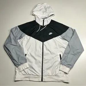 Nike Men's Sportswear Windbreaker Hooded Jacket White Black Grey Size Large