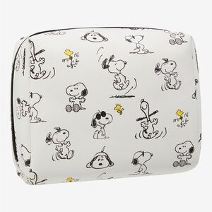 Happiness is this Peanuts cosmetic bag! Featuring an allover print of Snoopy in various poses with Woodstock, this bag includes a zipper pull of the beagle, perfect for holding your cosmetics, accessories, and trinkets.