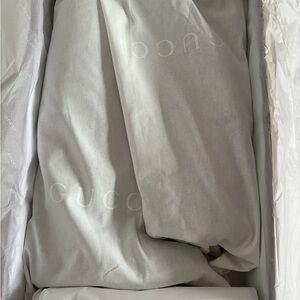Iconic Gucci equestrian riding boot. Napa leather GG embossed shaft, plain leather front. Silver horsebit detail, rubber sole. Worn once, little sign of wear. Original box, dust bags, and packaging included.