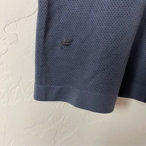 Fabletics mens size large tank top in a solid dark blue color. Knit tee in a sleeveless style muscle cut, high neckline. Mesh perforated back to provide anti odor and sweat technology. Lightweight knit is perfect for workouts or casual use. Logo on back. Nylon blend fabric with stretch. Gently worn condition without flaws.