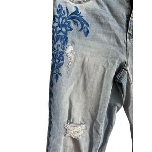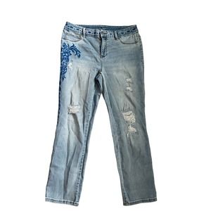 Chicco’s Platinum Crop Embroidered & Distressed Jeans Size 4 (Chicco’s size 0)