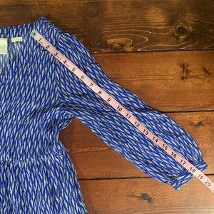 Maeve Lila Blue White Tiered 3/4 Sleeve XX-Small V-Neck Tiered Tunic Top GUC