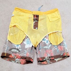 Tommy Bahama Relax Swim Trunks Mens Medium Brown Floral Board Shorts Drawstring