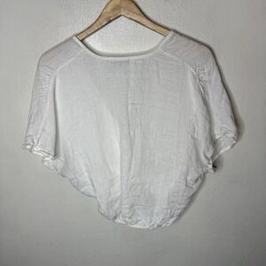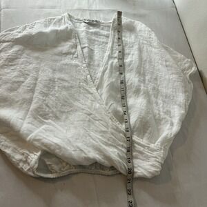 Meo Meli Faux Wrap V-neck Shirt Sleeve White Linen Top Women's One Size Beach
