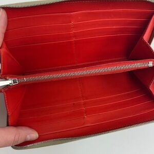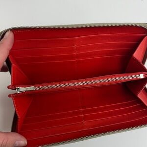 Chic Celine wallet crafted in taupe leather. Features a minimalist design with secure zip closure.