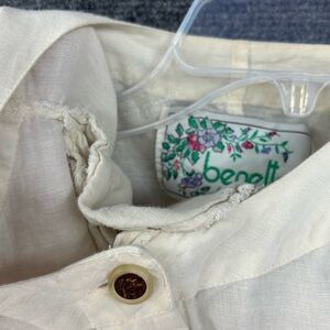 VINTAGE 80s Benetton Off White Linen Button Down Shirt Dress Tunic Womens Small