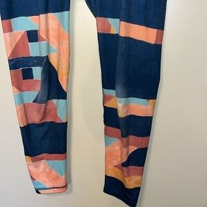 PrAna Leggings multi color blue orange red womens size large, pattern, in good/great condition