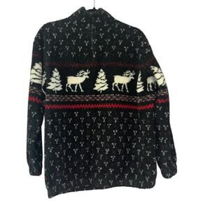 Vtg 90’s Black Holiday Reindeer Christmas Fleece Jacket Women’s M Cozy Cottage