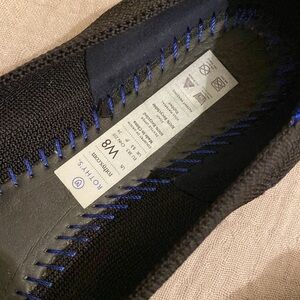 Stylish black flats with blue trim. Comfortable and versatile.