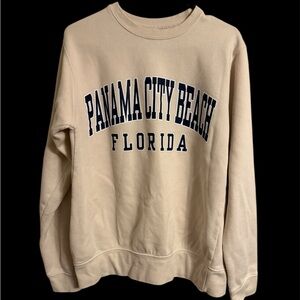 Pacifica Tan Crewneck Sweater with Navy Panama City Beach Print