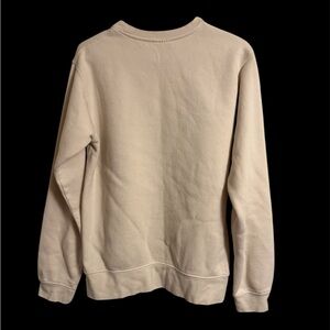 Comfortable tan crewneck with bold navy lettering. Ideal for casual wear.