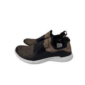 The APL Lululemon TechLoom Bliss Women's Sneakers in Black Gold Knit are a stylish and comfortable option for athletic shoes.
