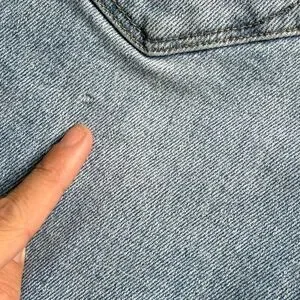 Trendy light blue jeans with distressed details. Ankle length for a modern look. Perfect for casual wear.