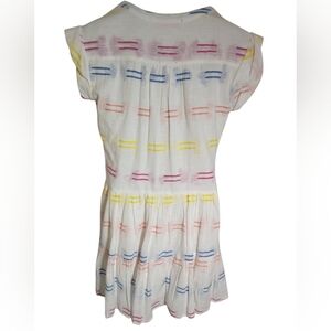 Oliphant Colorful Rainbow Stripe V Neck Cap Sleeve Pocket Cotton Midi Dress Sz S