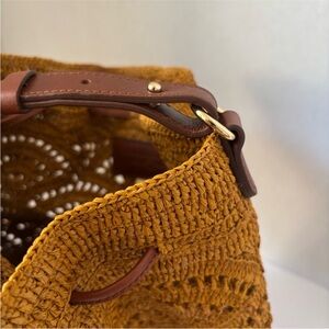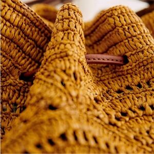 Keywords: Sezane Alma Bucket Bag Sezane bag raffia bucket bag crossbody bag shoulder bag leather bucket bag ochre Sezane brown raffia bag sold out Sezane hard to find rare Sezane woven raffia straw bag French brand Sezane Paris spring bag summer bag