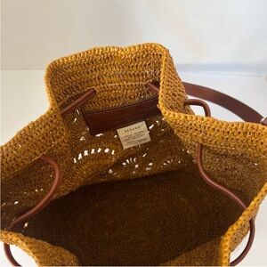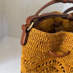 Sezane Alma Bucket Bag Ochre Raffia Leather Brown Shoulder Crossbody Purse Rare