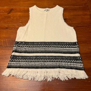 Madewell Size Medium Villagrove Sweater Tank in Ivory and Black with Fringe