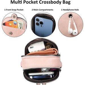 Large Capacity: This small phone purse features a smart triple-compartments design: a front flap with magnetic snap, 2 main zippered pockets. All pockets are designed to provide a fast and convenient way to access items while ensuring safety