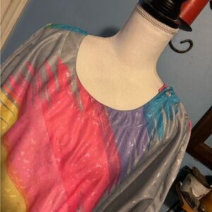 Vintage 1980s, Shaker Sport, Neon Rainbow, Shimmer, Short Sleeve, Top with buttons on the shoulder