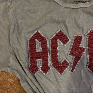 Beaded Gray t-shirt with AC/DC logo. Casual and stylish.