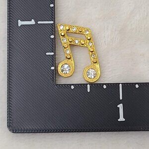Gold Tone Musical Note Rhinestone Lapel Pin Music Theme Costume Jewelry