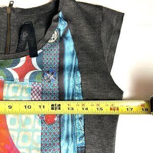 Desigual Patchwork Multicolor Front Sheath Cap Sleeve Fitted Mini Dress M