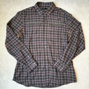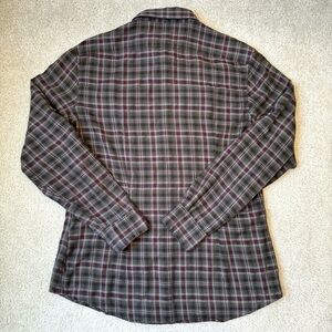 John Varvatos USA olive plaid long sleeve button up shirt, zipper pockets Large